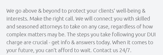 DUI Firm. Police officers take drunk driving very seriously and, it is not uncommon for an officer to utilize unfair practices during a DUI arrest. It ...
